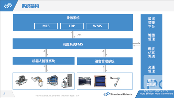 我們對(duì)接工廠的MES、 ERP、 WMS,做了自己的調(diào)度系統(tǒng)FMS,不只能夠?qū)崿F(xiàn)車(chē)輛的調(diào)度,也會(huì)把我們搬運(yùn)的數(shù)據(jù)反饋回去,就整個(gè)物流的時(shí)間、頻次提供建議,做一套數(shù)據(jù)的模型出來(lái),幫工廠以最優(yōu)方式和最快速度實(shí)現(xiàn)整個(gè)物流配送。
